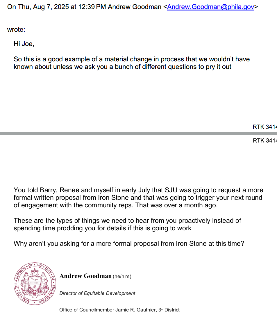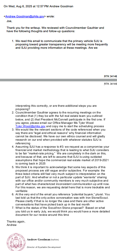 Like seriously what does he mean “we need to hear from you proactively instead of spending time prodding you for details if this is going to work” - it’s good for SJU to keep electeds in the loop but that’s not how property rights work, they can sell property that they own. My 1L property class was a long time ago (“property is a bundle of rights” or something) but I’m pretty sure that’s one of the basics.